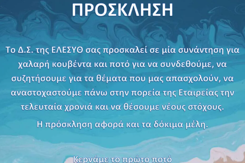 Καθώς πλησιάζουμε στο τέλος της χρονιάς, θα θέλαμε να σας προσκαλέσουμε σε μία συνάντηση για χαλαρή κο...
